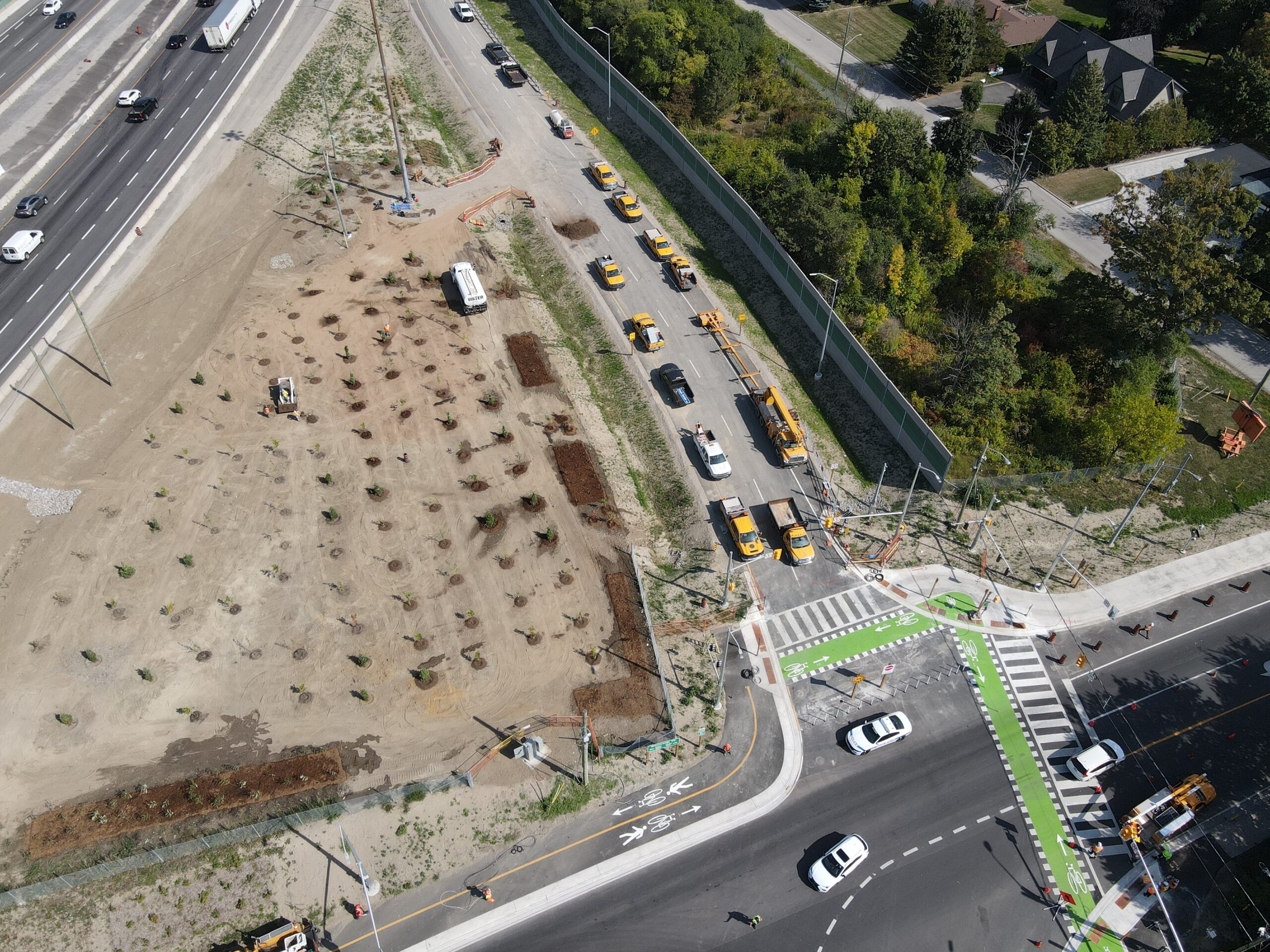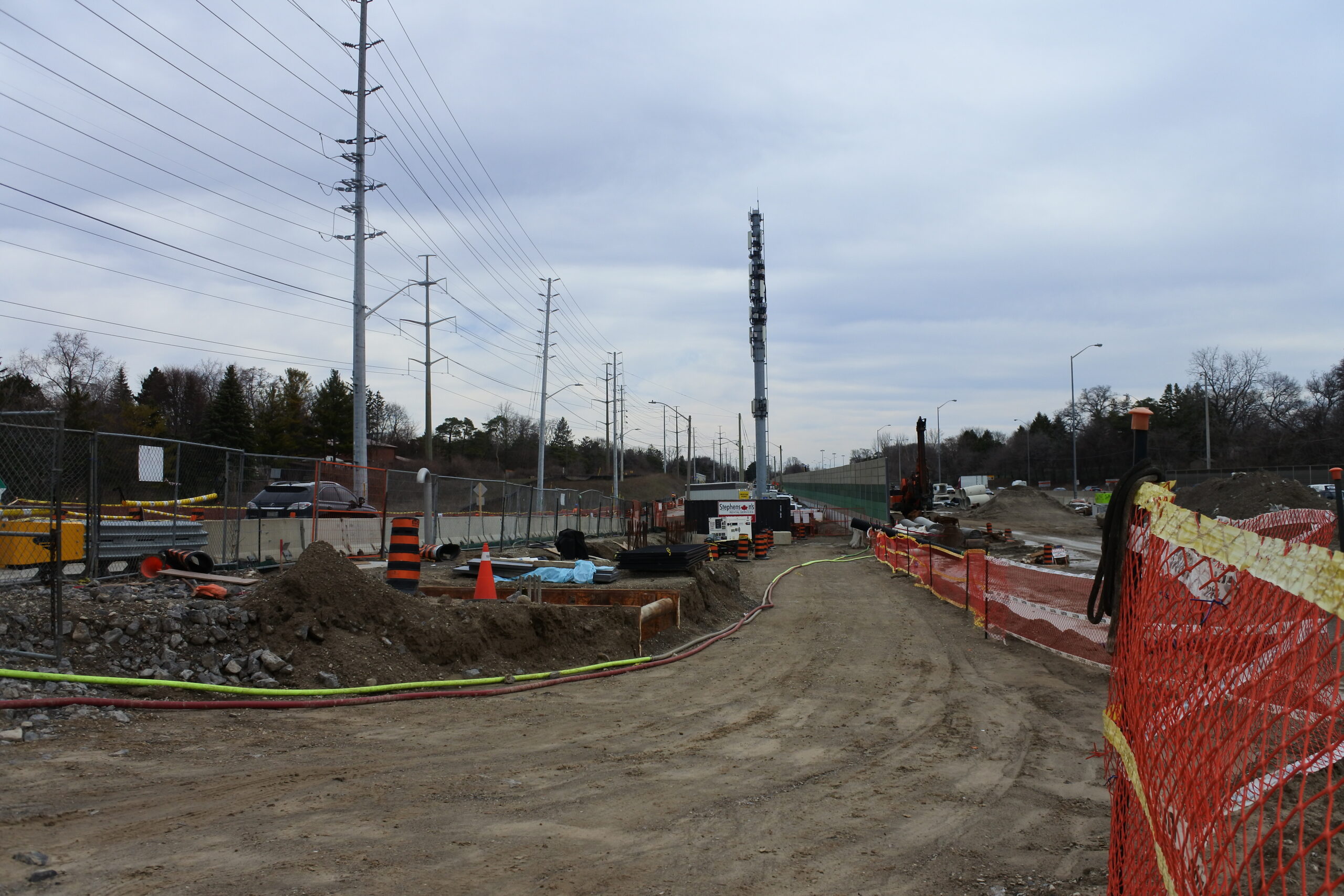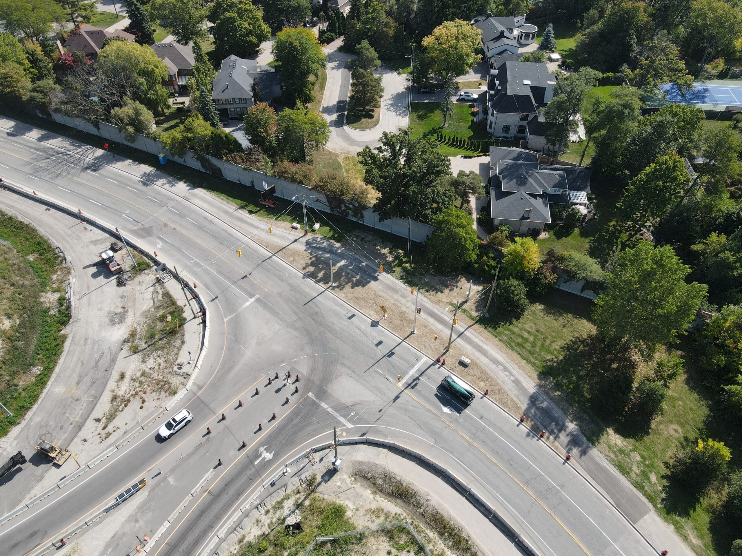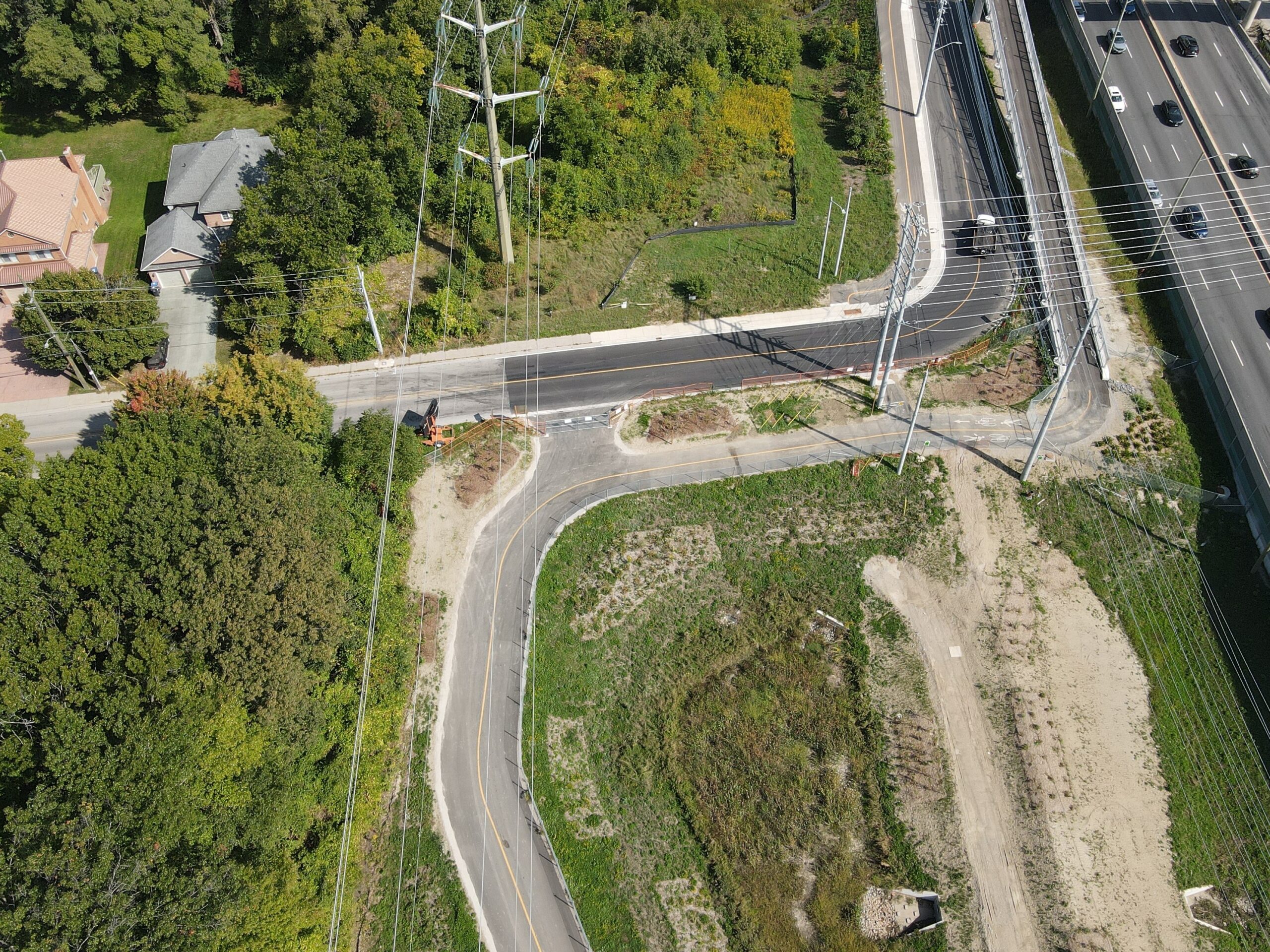 Côté est du chemin Mississauga (vers le nord) – Construction de routes