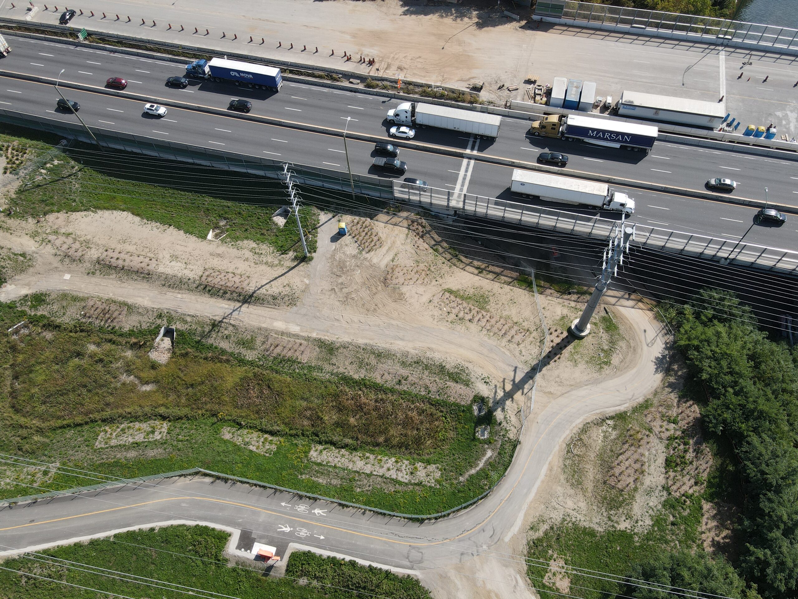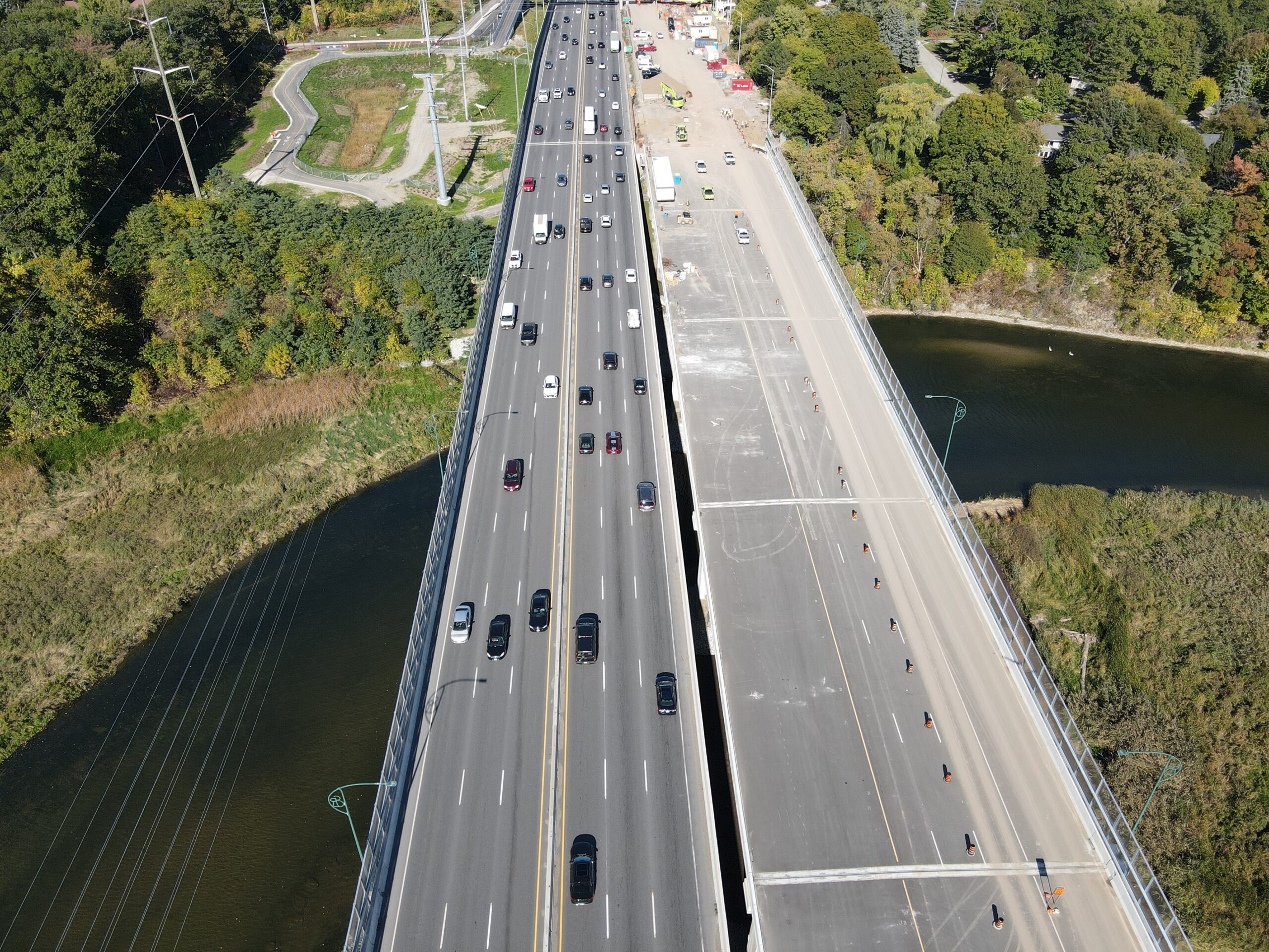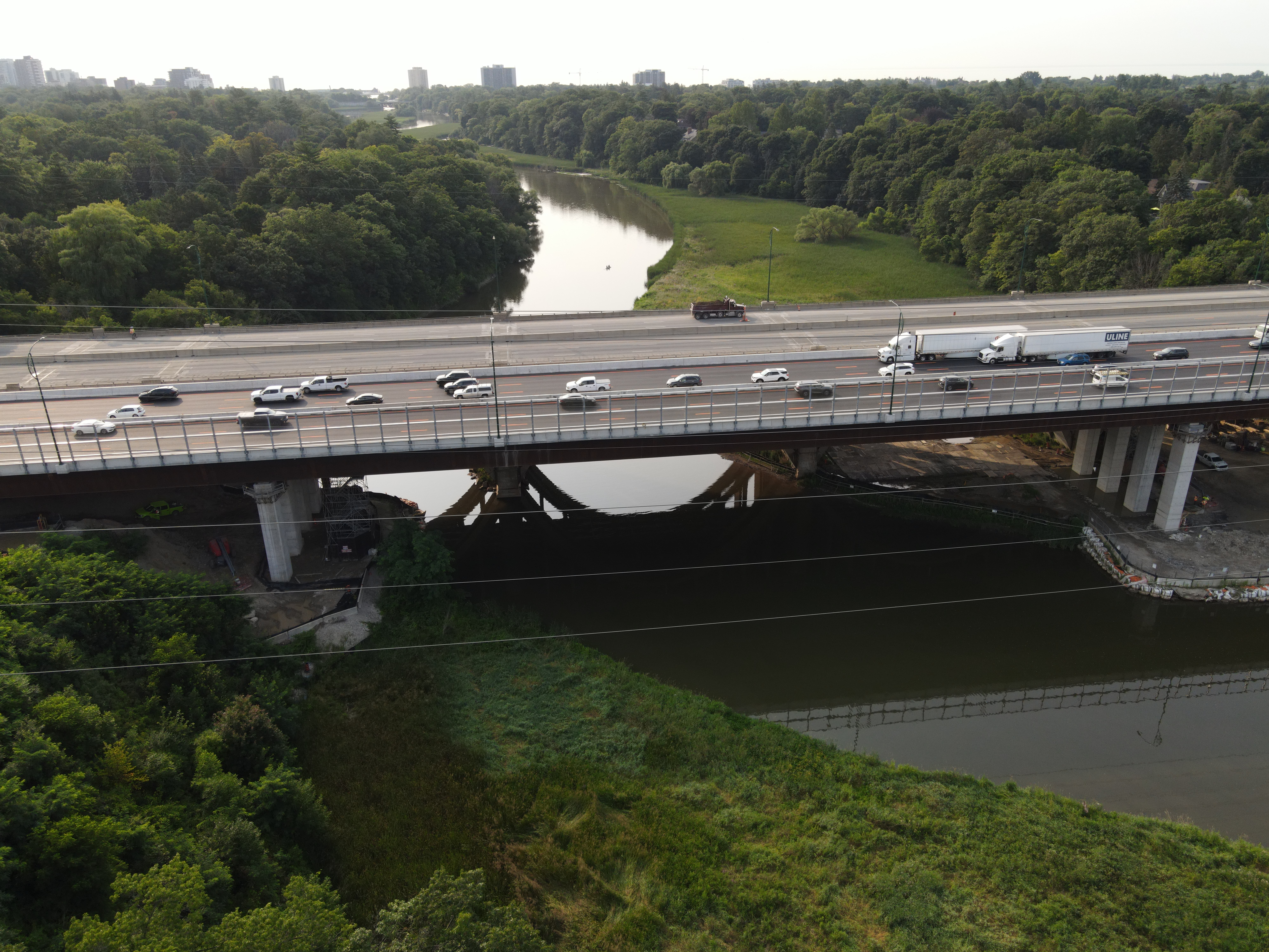 Nouveau pont de la rivière QEW Credit East Piers – Regard vers l’ouest