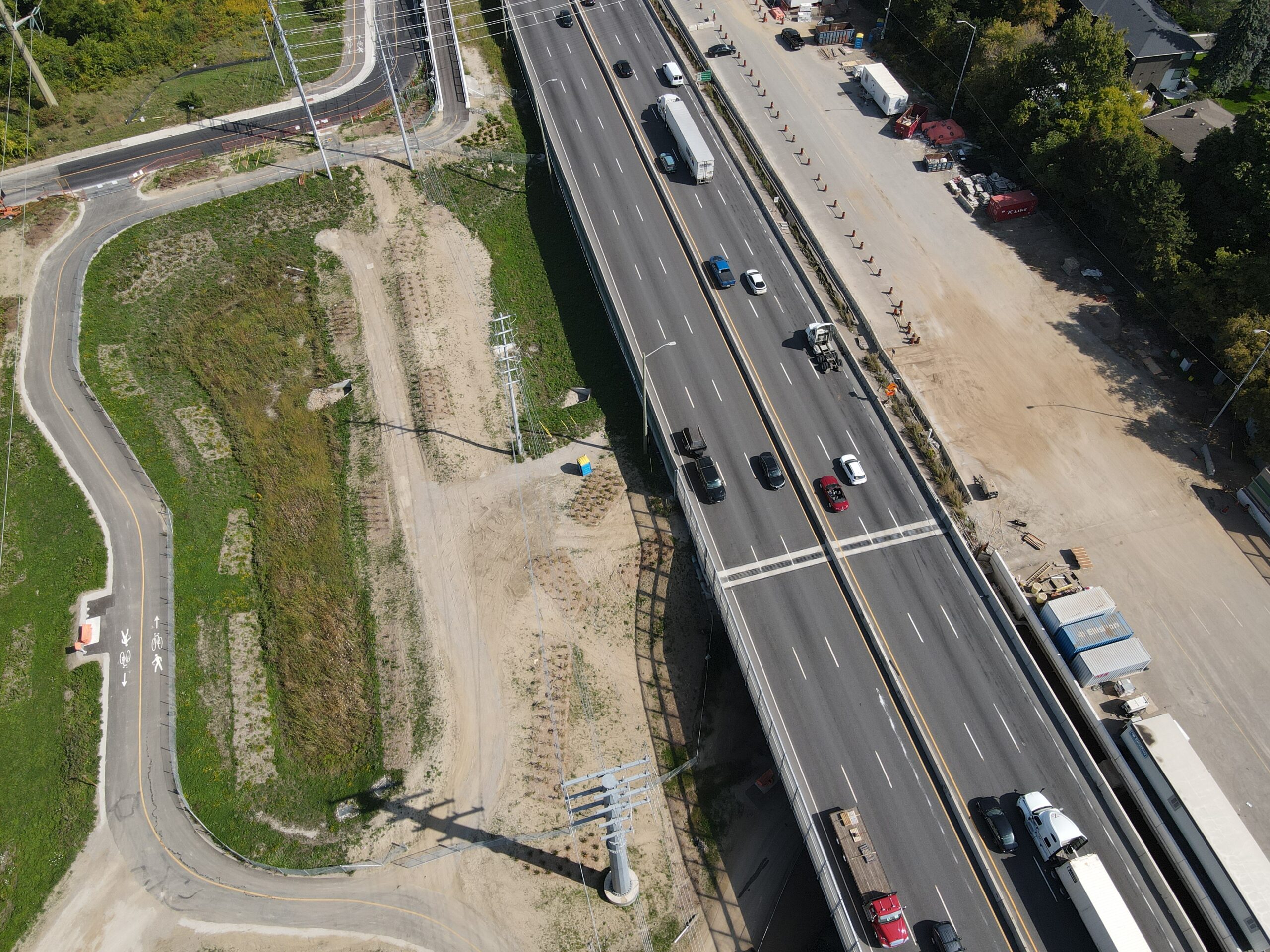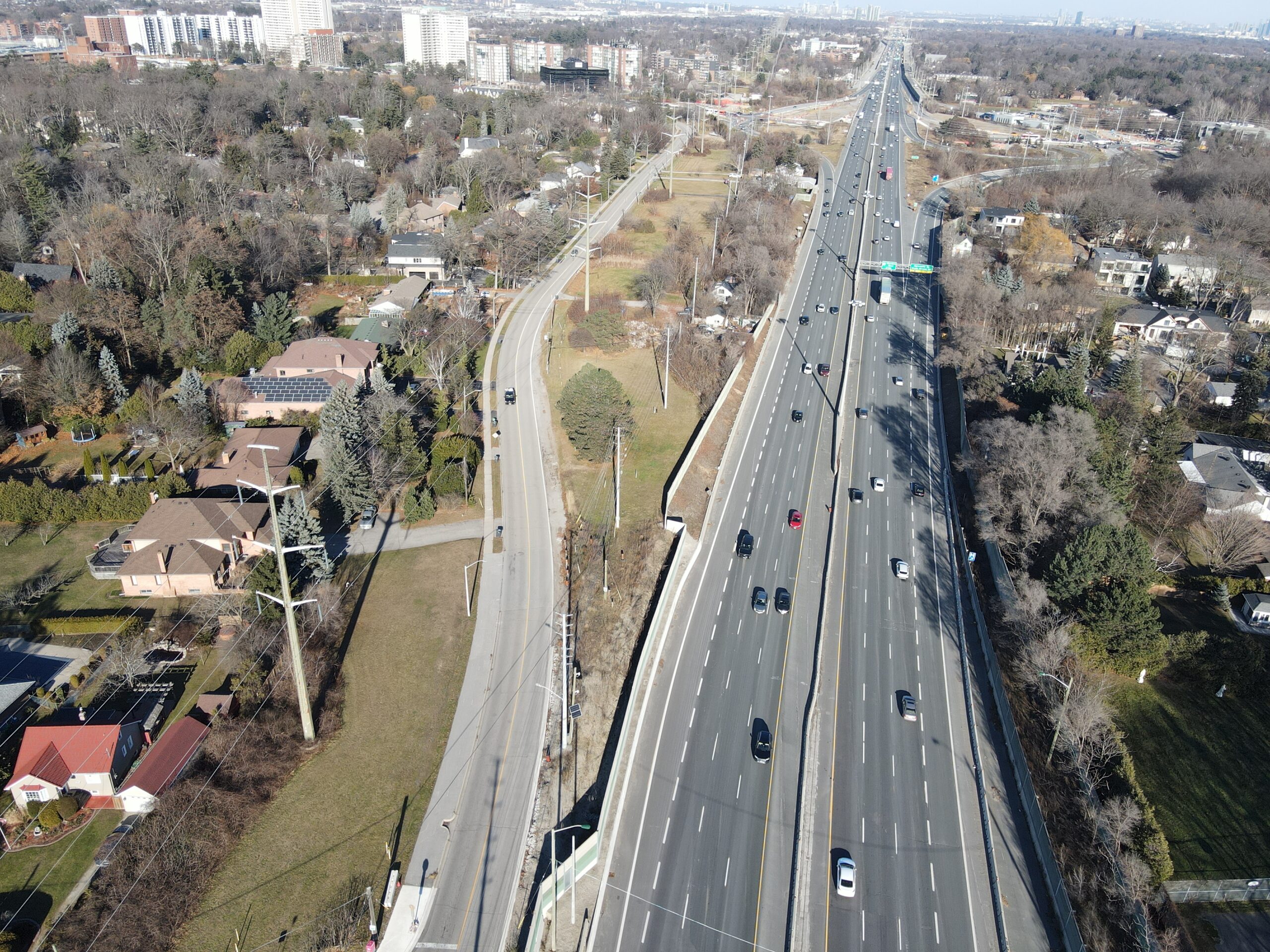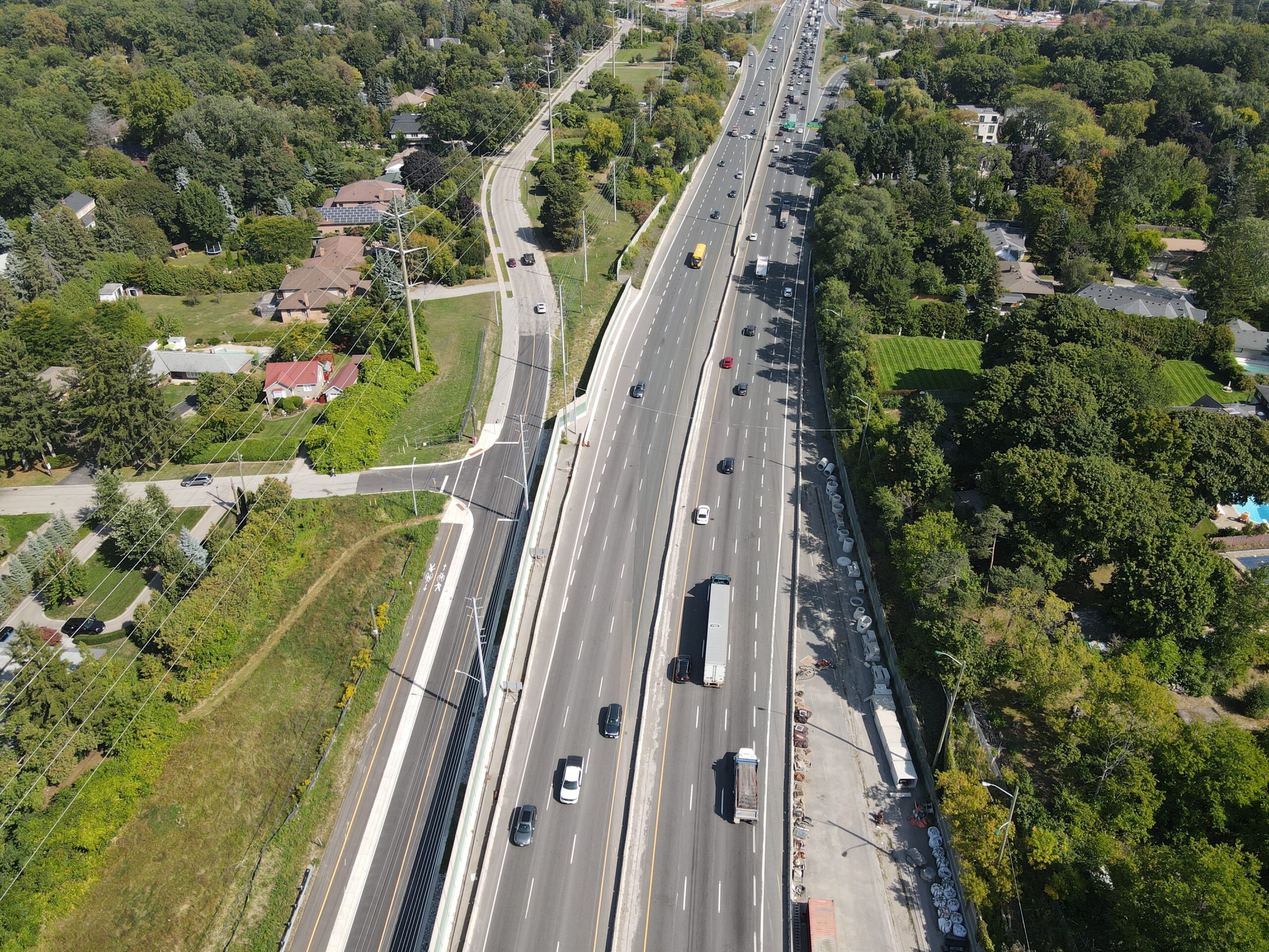 QEW West Bound Lanes and New Noise Wall - Looking East