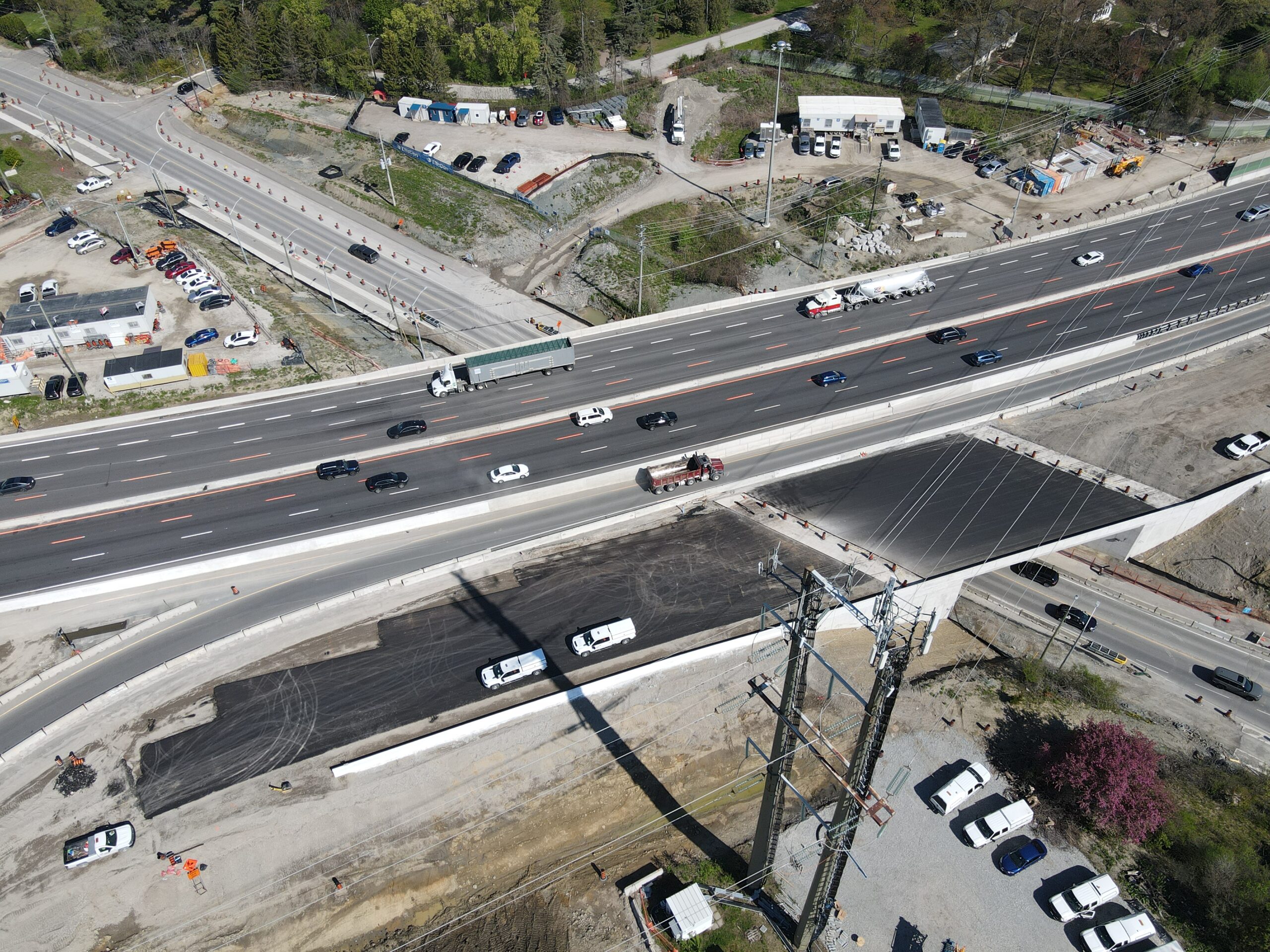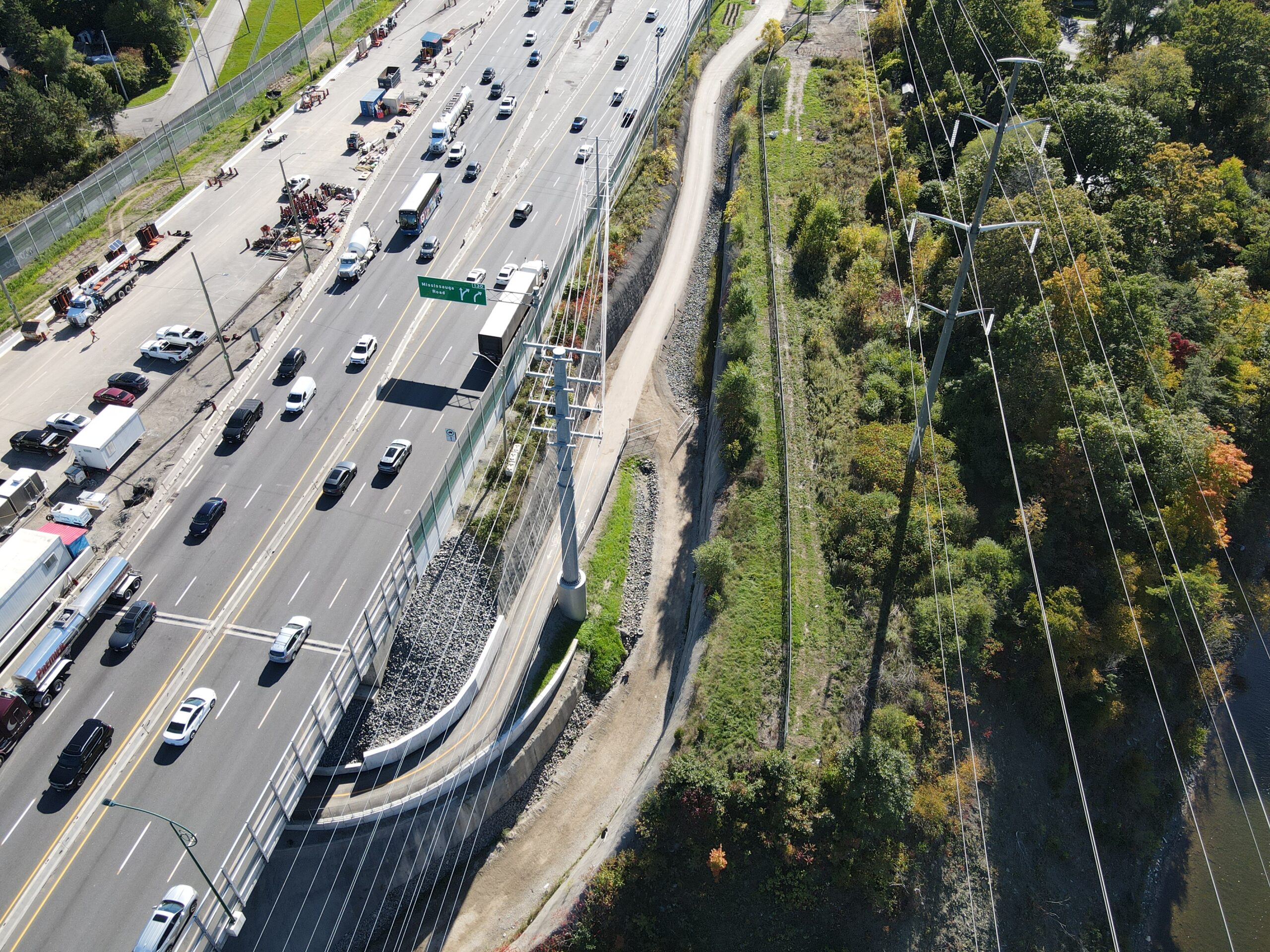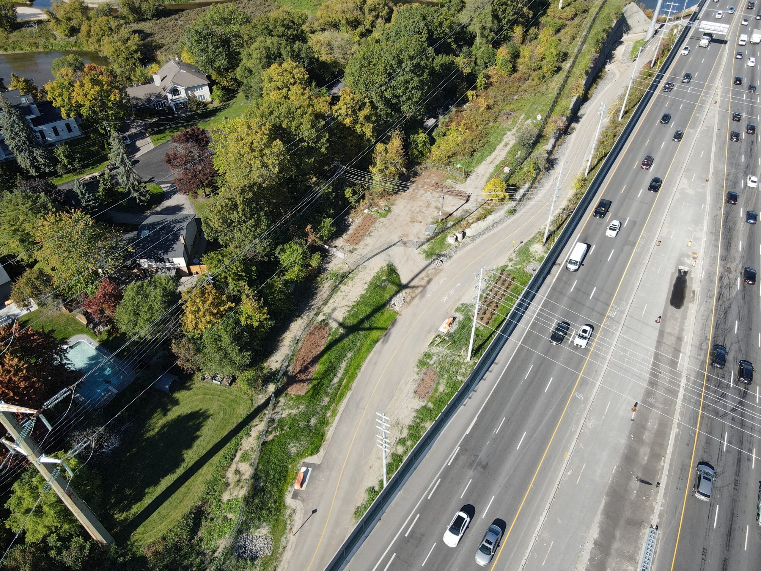 QEW West Bound Lanes and New Noise Wall - Looking East