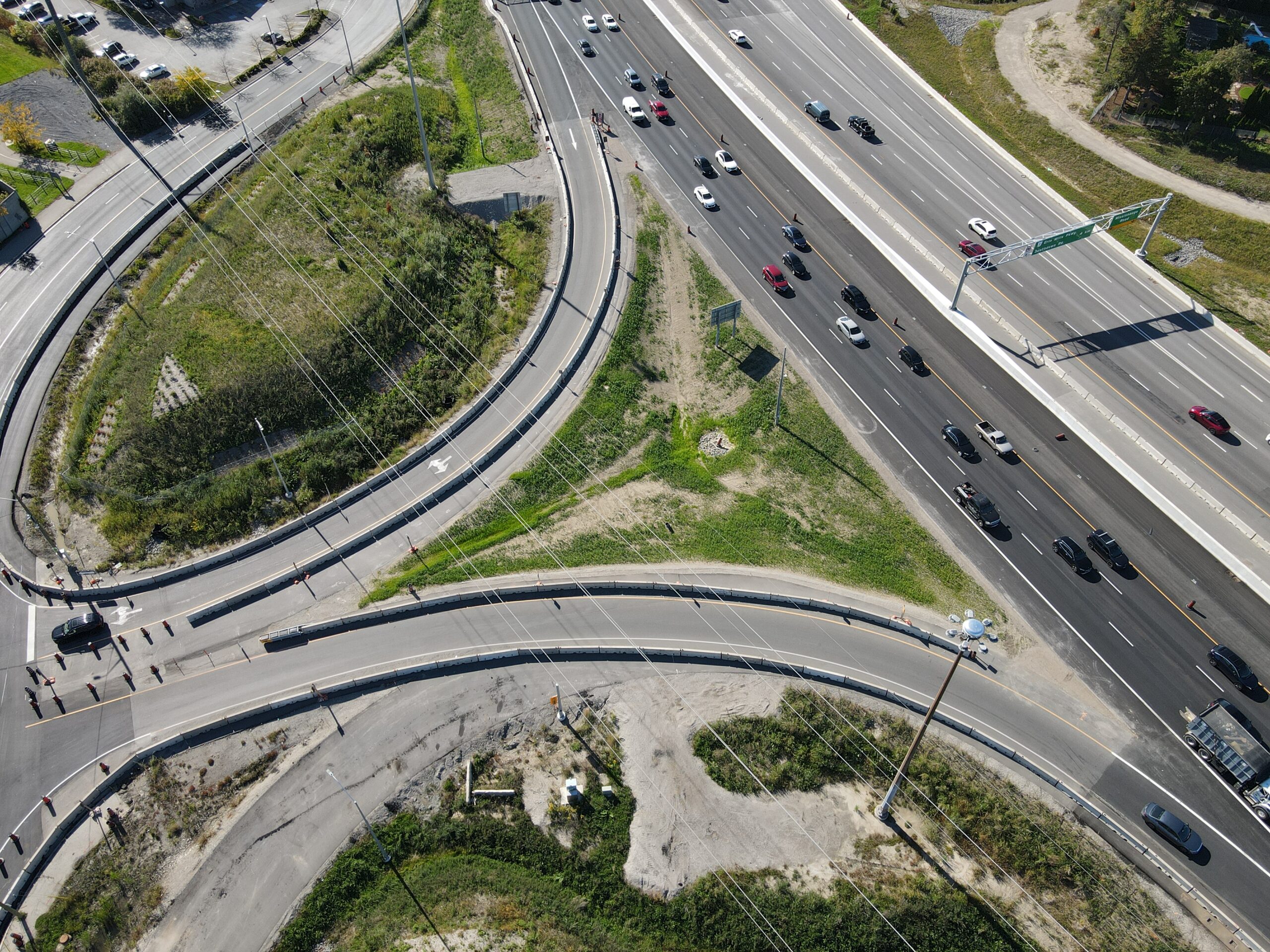 Sortie de l’autoroute QEW Ouest vers le chemin Mississauga – Vue vers l’ouest
